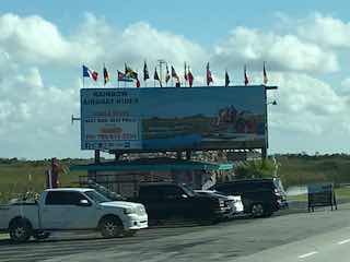Tom is getting brave with the beast. He decided that instead of traveling south on 75, Alligator Alley, he wanted to try Tamiami Trail since he felt it would be something different. Only problem is there is a median and we can’t go left. No U turns can be made with this. He turned into the hospital parking lot thinking we could come out at a light and be able to make that left turn. If only it were that easy. The parking lot twisted and turned. I thought surely we would have to disconnect the car. We didnt.