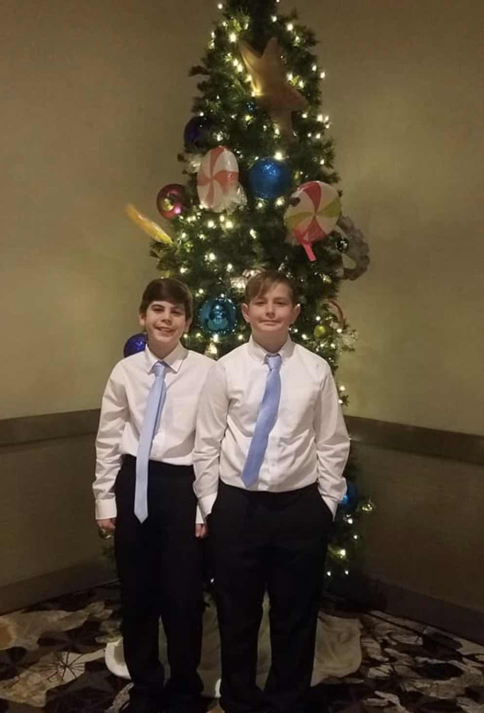 Two younger Missouri nephews celebrate at a school dance: