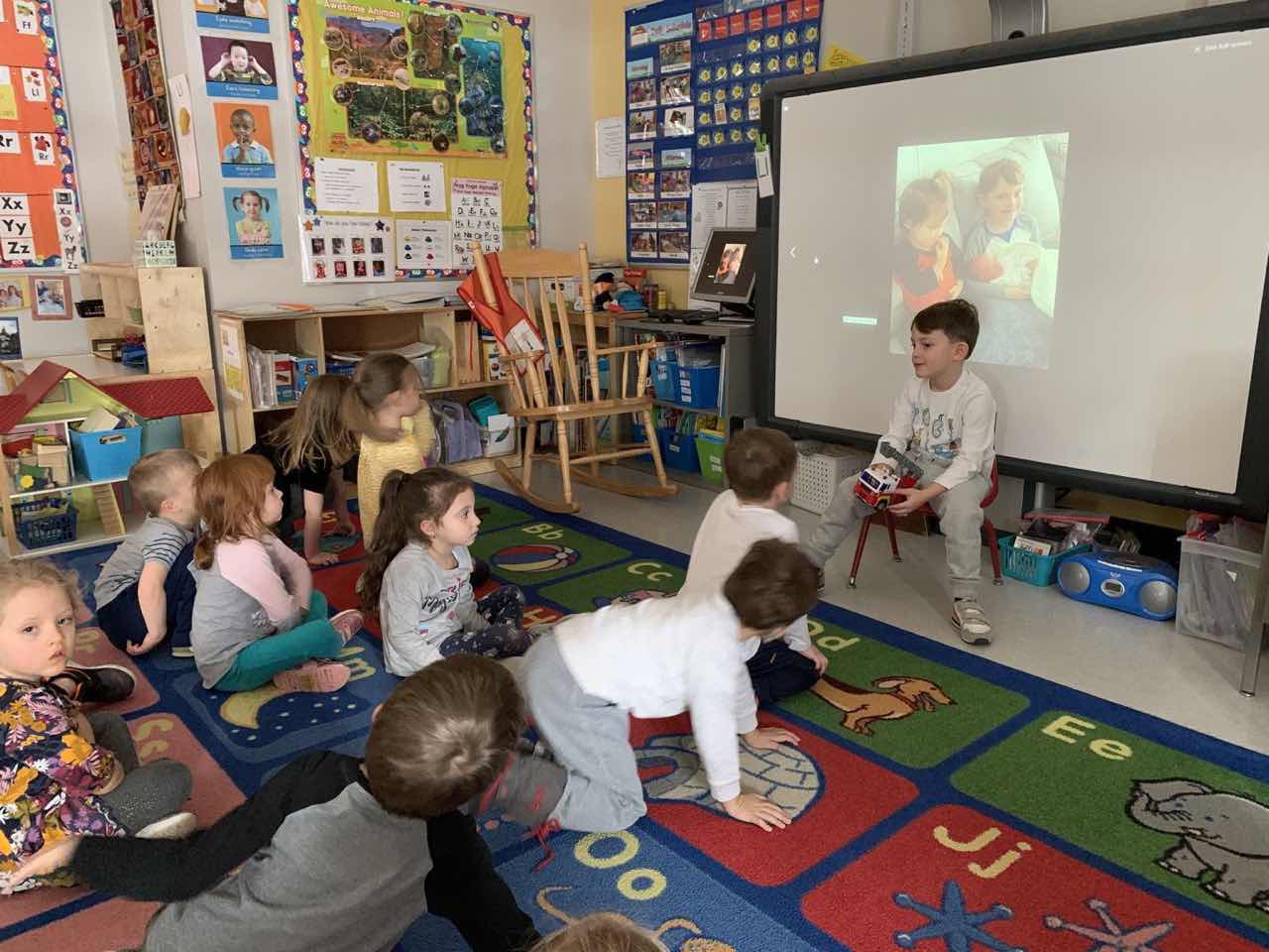 Em and Todd Sent photos of Leo at school during show and tell. He is so serious showing his firetruck. He is a truck expert. He probably explained every part, what it’s used for, how it was made, how it works with other trucks, what firemen do..... get the idea. When he was here, Uncle Tony took him to the fire station and let him touch everything and sit in the drivers seat, etc. LEO loves trucks. I bet the teacher had to stop him to give someone else a chance. Ha! He is quite knowledgeable!