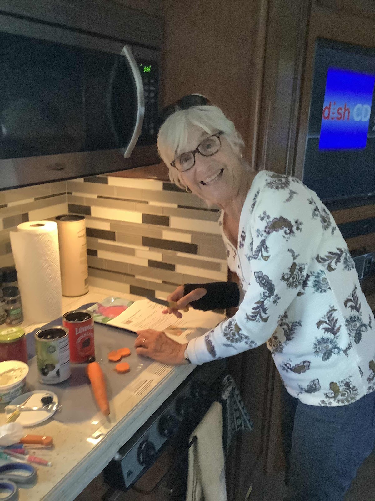 At 8, I went to step class, then home to make mini sandwiches and chowder for lunch while Joan and Gordon Are here.