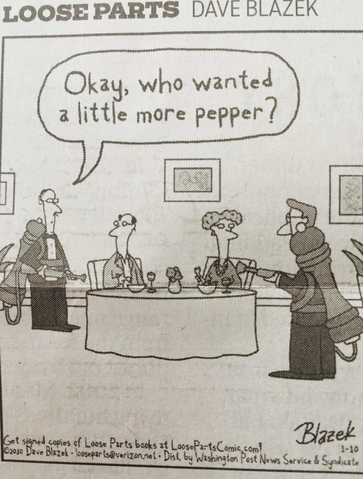 Rick and CAROLYN send us Great Cartoons. They know my love , lol, for pepper on everything so they sent this cartoon. While we were on the Princess Cruise, I could never get enough pepper from the waiters.Ha!