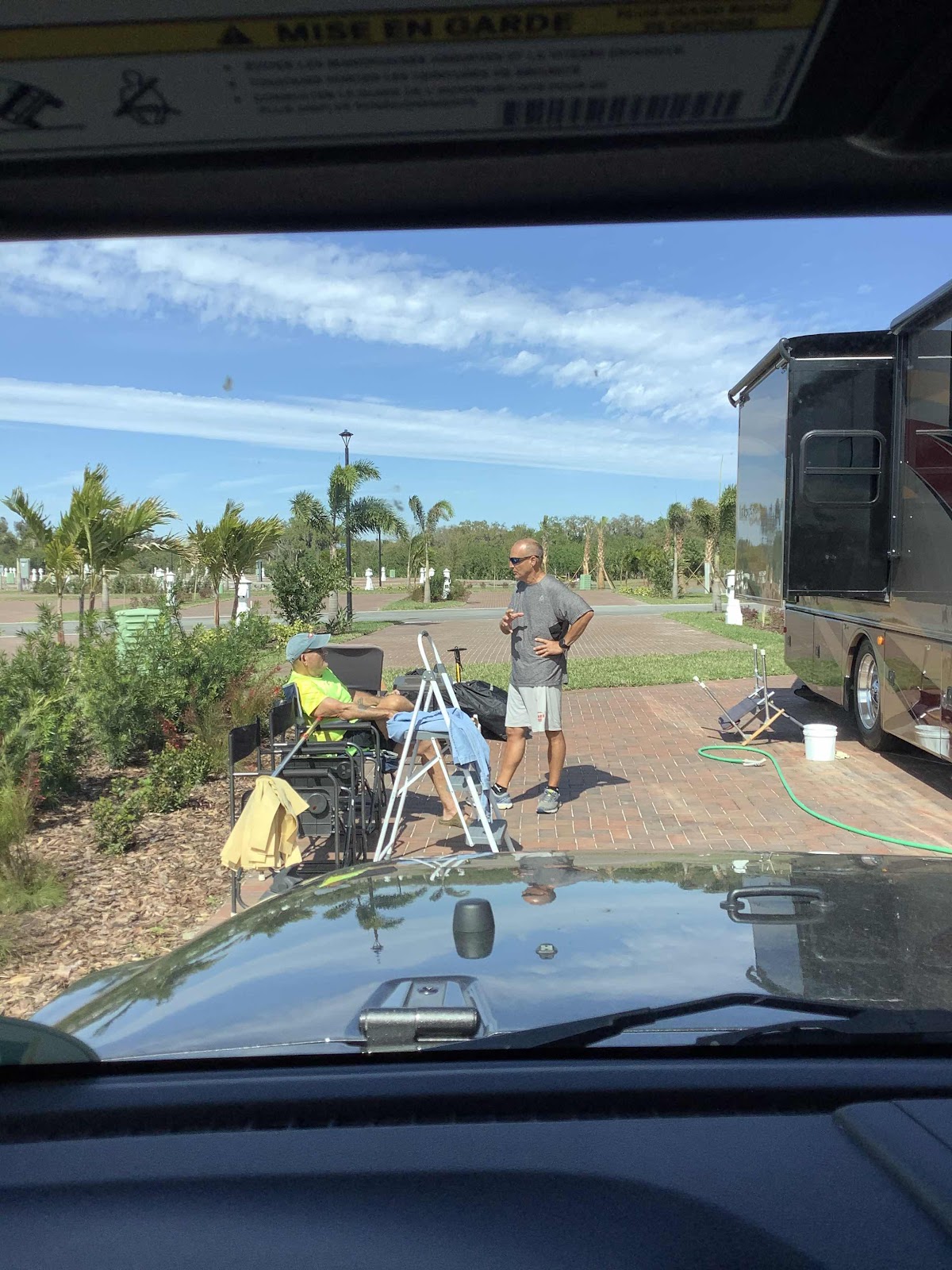 After a great workout in the fitness center, brrrrr outside, and a long hot shower, Tom and I had a quick cereal breakfast. He started washing the RV to finish bow and stern.
