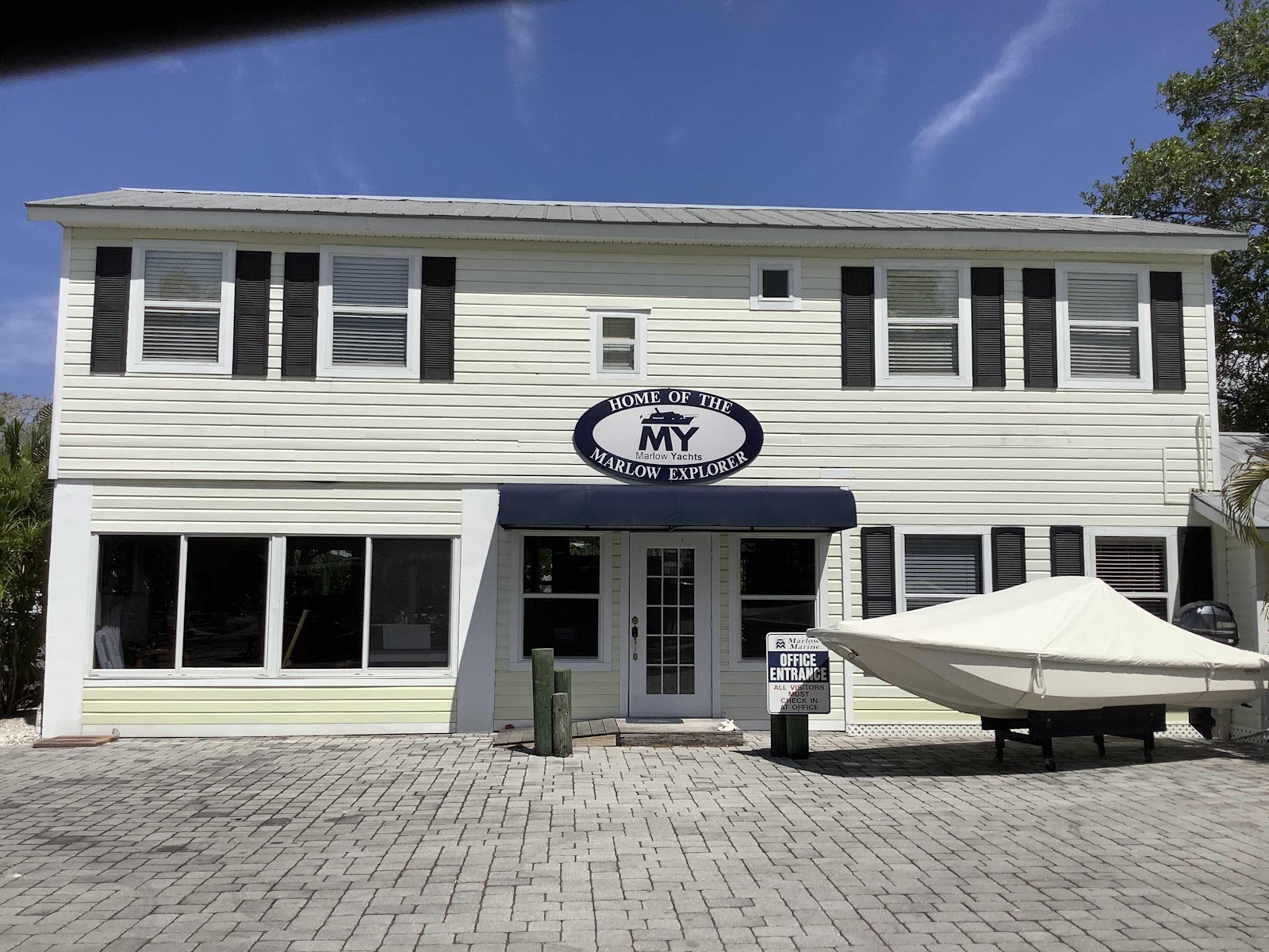After breakfast, Tom and I went to Snead Island, Marlow Marine to see if we could find MERMAID. No such luck. She must be inside . There were many new Marlow Explorers outside though. We passed the Bradenton Yacht Club and remembered being there with Geri , Bill, and pup, Jack.