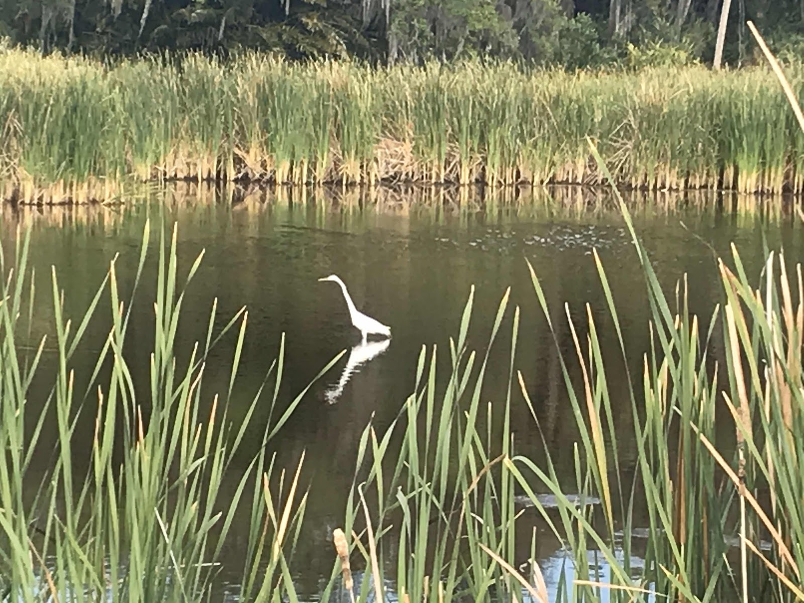 We could see the blue herons but could not get a photo. The snowy egret was easy as was the kayakıng creek whıch was also barracaded.