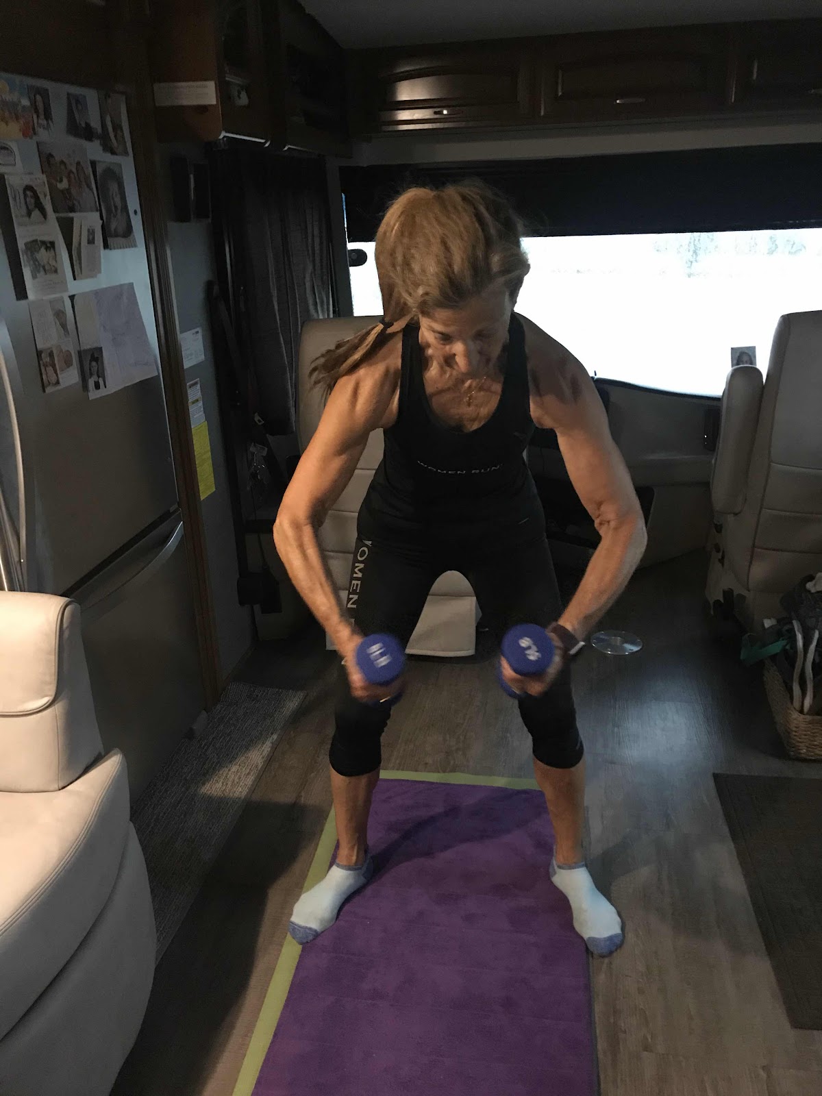 THE COUNTERTOP BECAME MY CHAIR FOR BARRE SINCE THE CHAIRS WERE OUTSIDE SOAKING WET