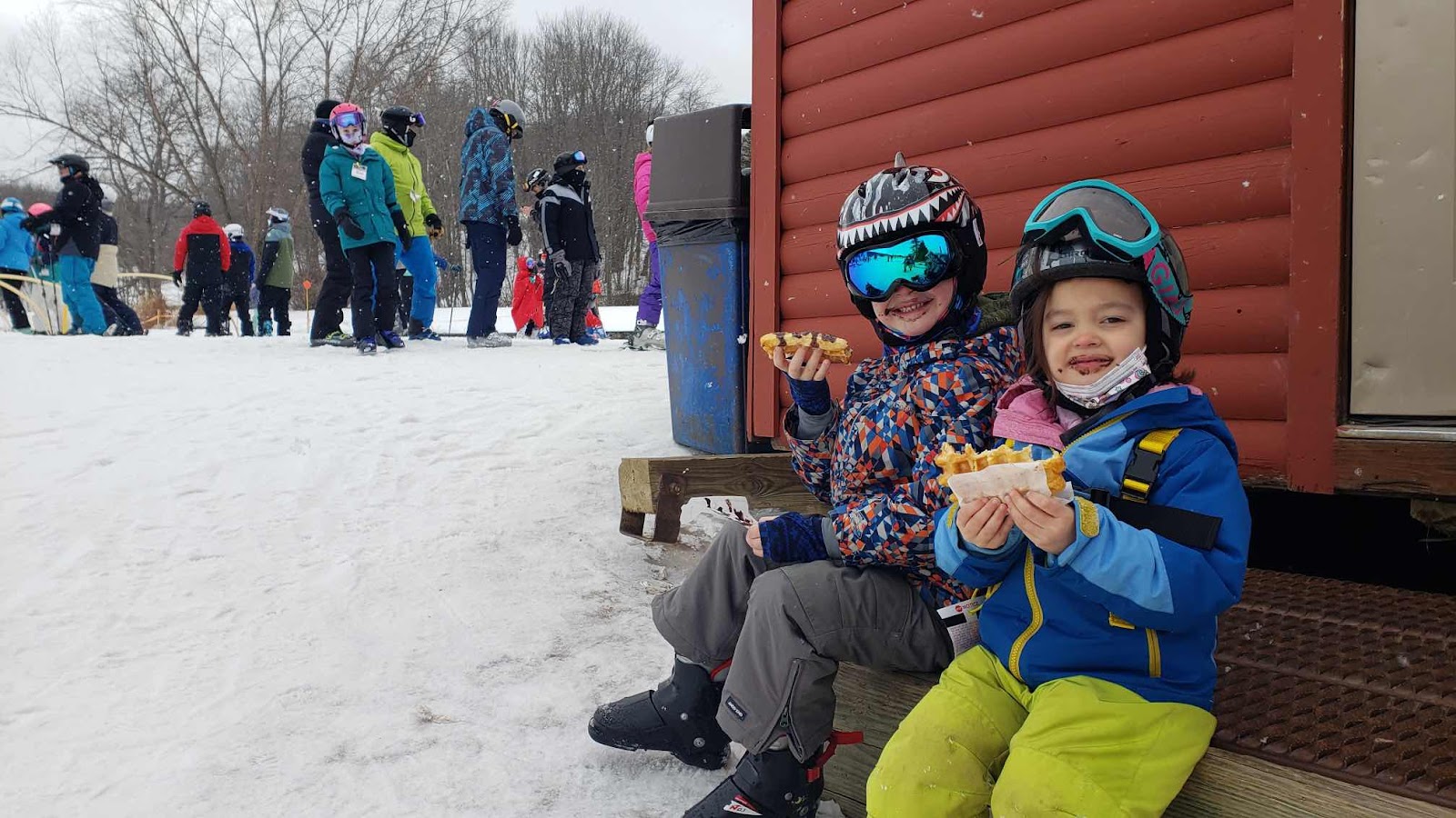 Todd sent us photos of holiday valley. The kids ha skied and were now having a chocolate waffle.